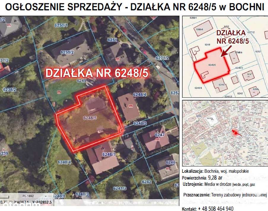 Wielkość działek na sprzedaż w miejscowości Bochnia wynosi od 450 do 14114 m².