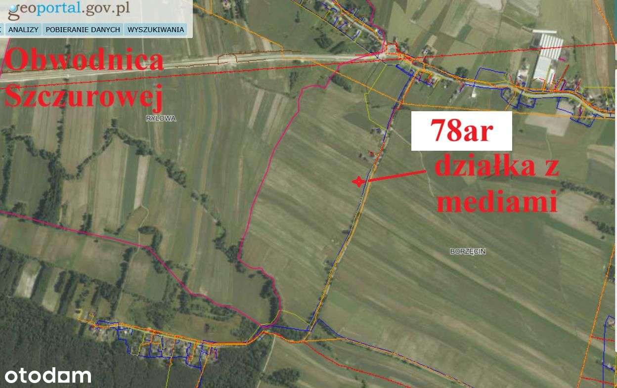 Działka przy nowej drodze gaz woda prąd Borzęcin