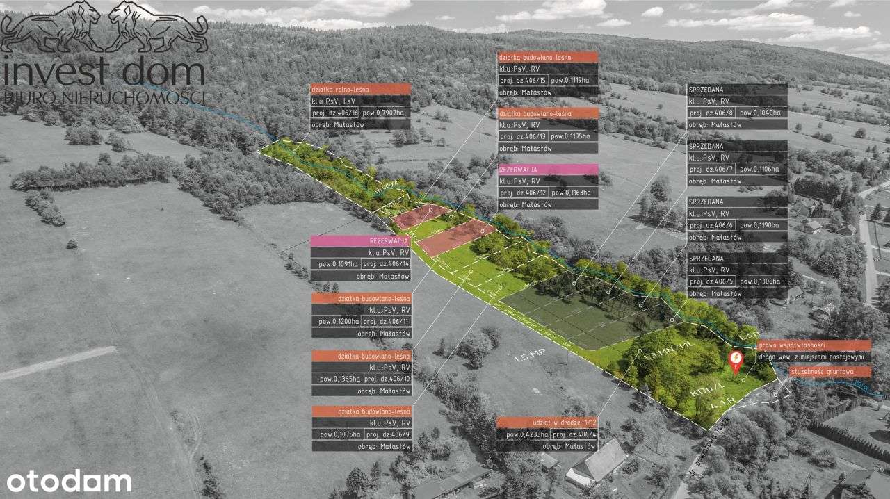 Na sprzedaż działka leśno-budowlana składająca się z 3 działek administracyjnych o łącznej powierzchni 54 ary. Numery działek: 31/1, 33/1, 32. Położona w malowniczej miejscowości Wołowiec. Jedyna nier...
