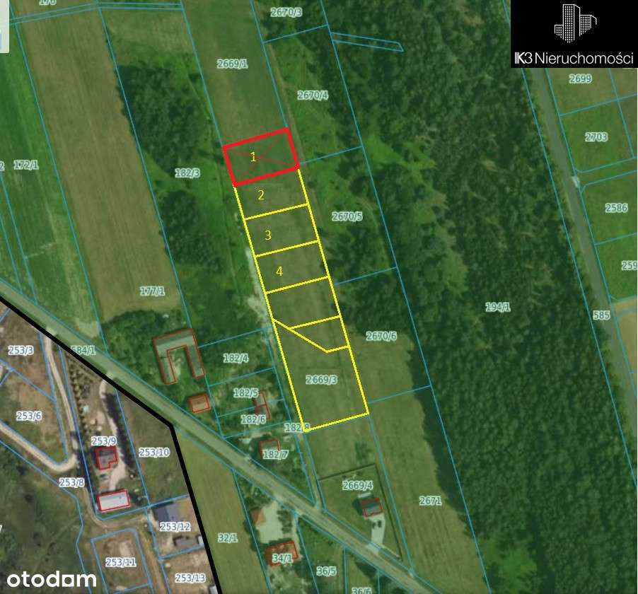 3 atrakcyjne działki budowlane obok lasu / 1000 m2