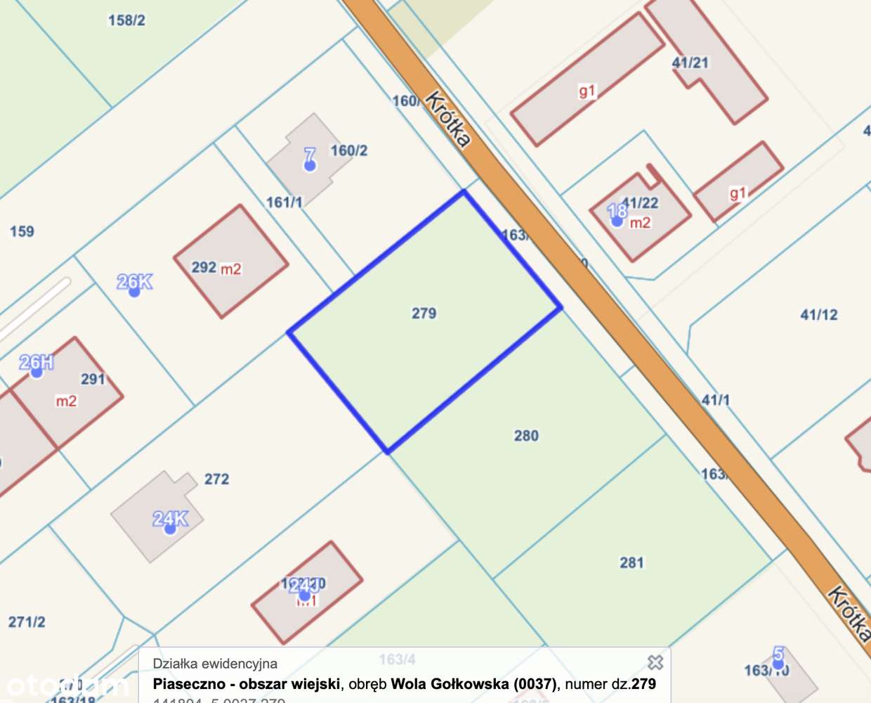 Działka nr 279 -1000 m2 – Wola Gołkowska, ul. Krótka 5A