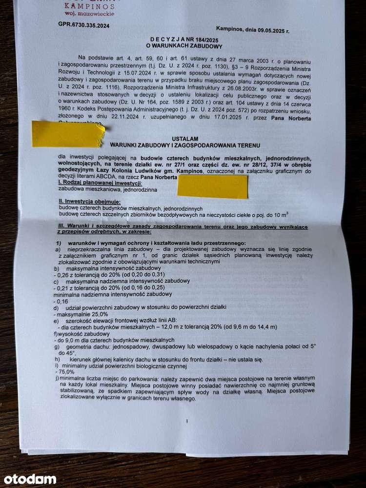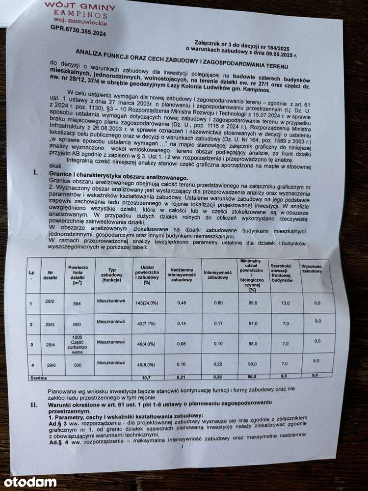 Działka inwestycja z warunkami zabudowy na 4 domy