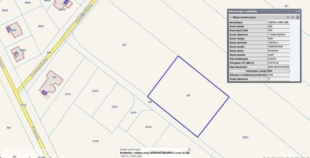 Działki budowlane nr 326 i nr 660 - Korfantów - 12000 PLN/ar