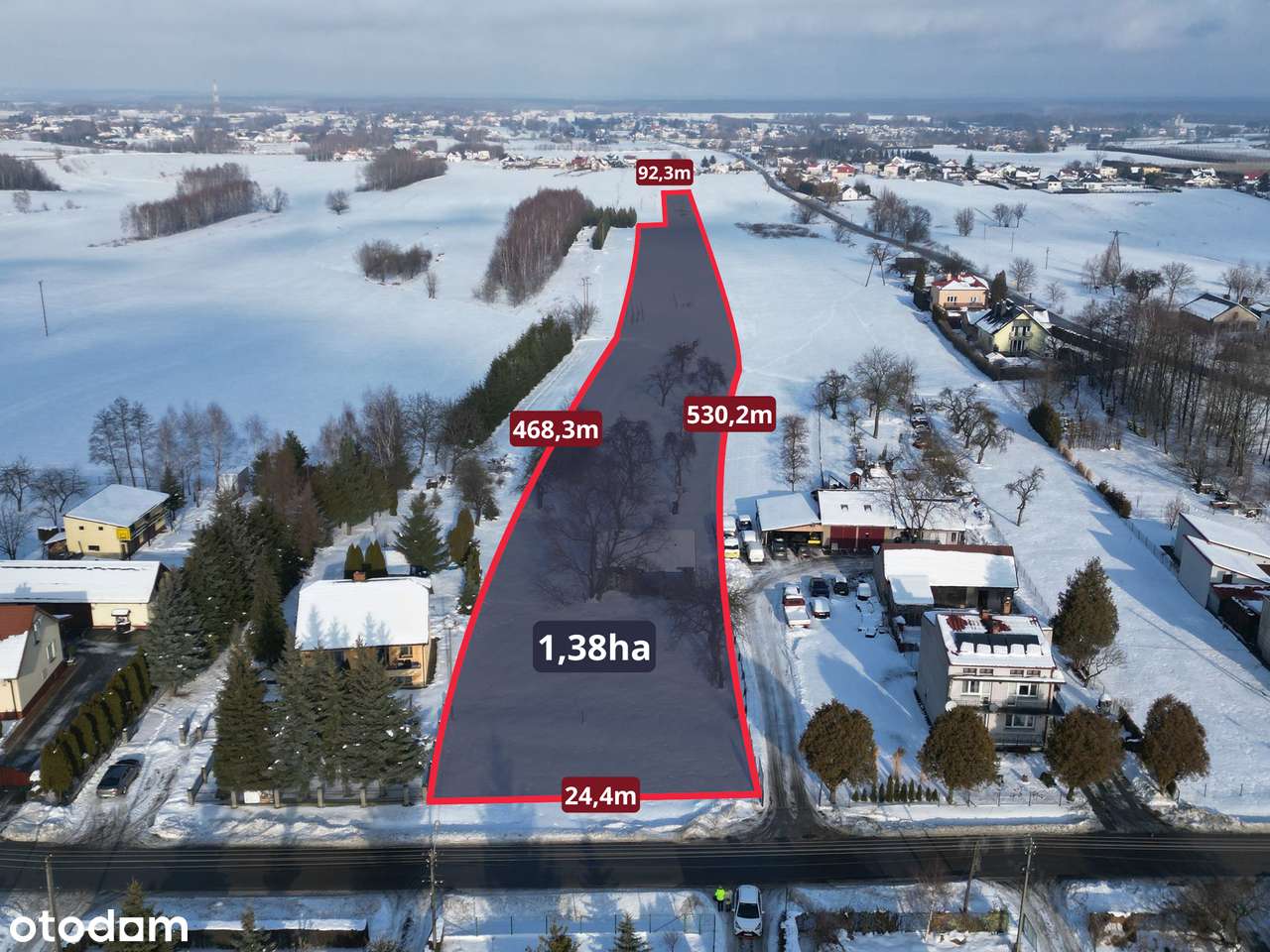 Działka rolna z mediami – centrum wsi Będziemyśl | 1,38 ha