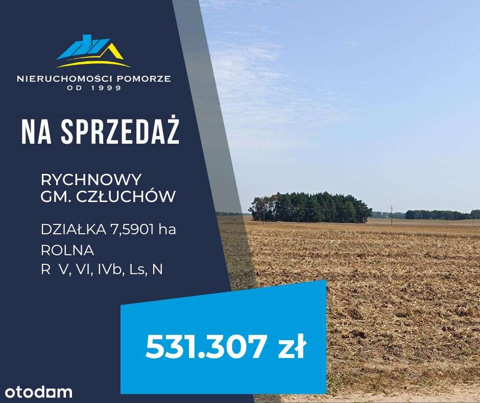 Działka rolna 7,5 ha Rychnowy