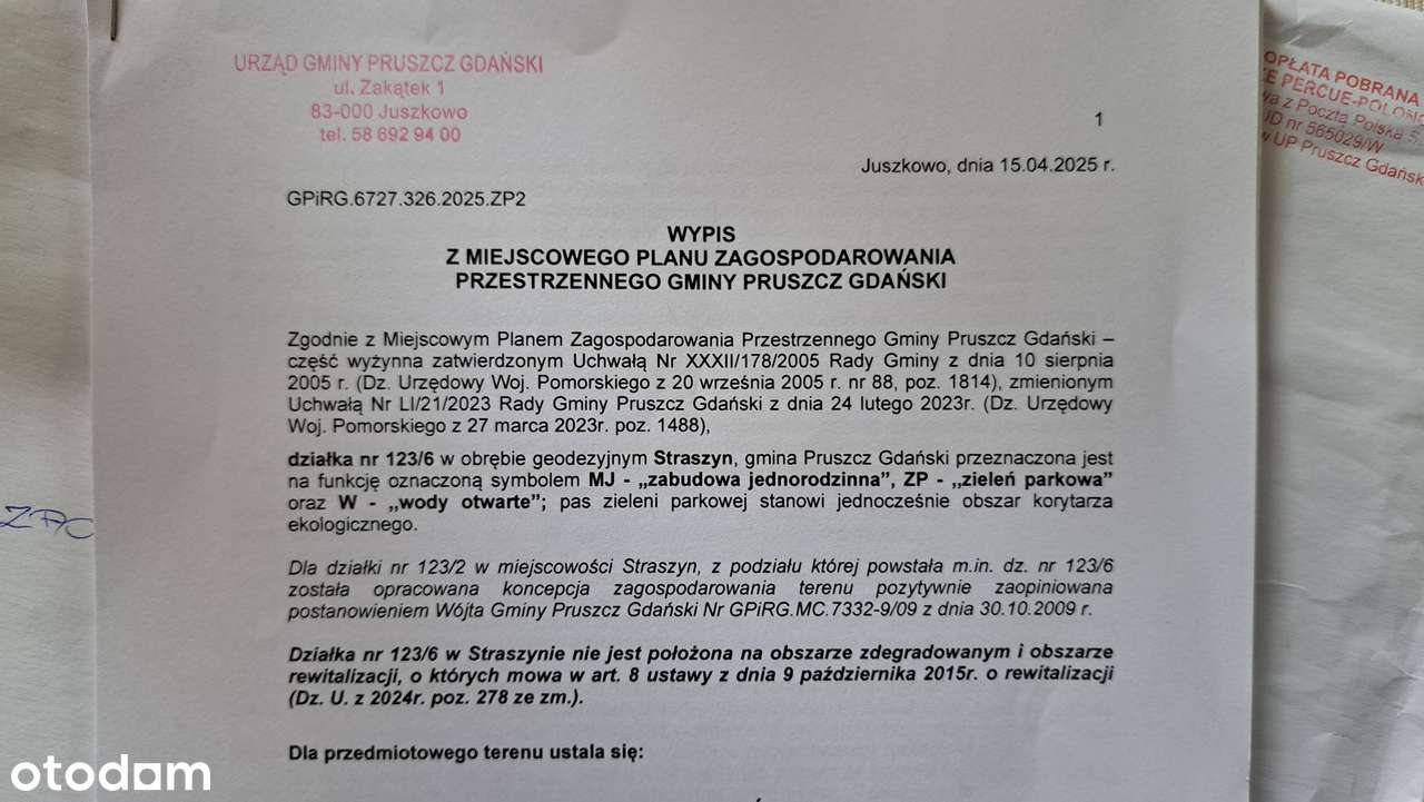 PLAN MPZP - DZIAŁKA BUDOWLANA - STRASZYN k/GDAŃSKA