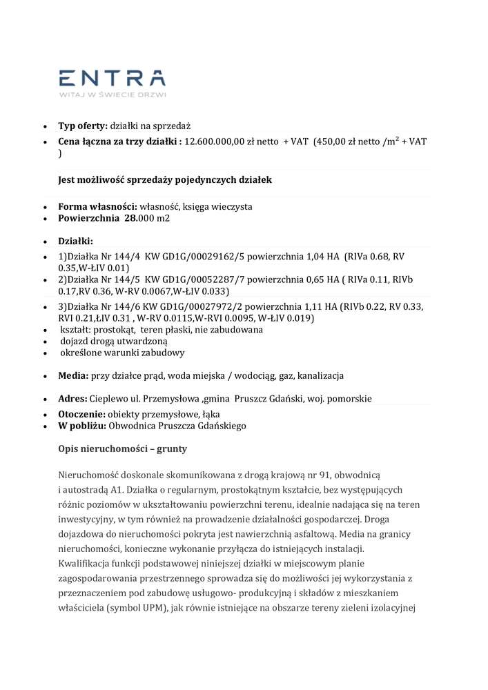 Gdańsk–Wiślinka 9,19 ha przy S7 Działki Przemysłowe UP Z MPZP Okazja!