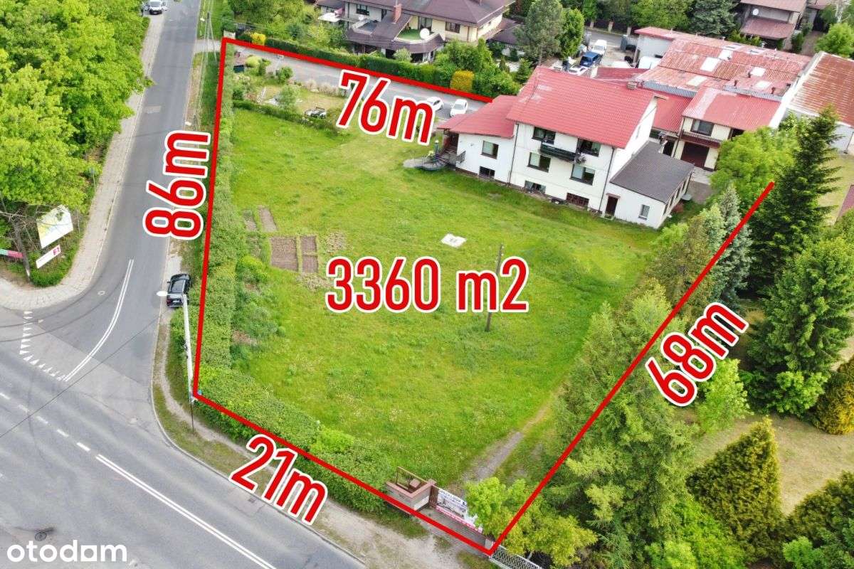 Narożna działka Rocha 3360 m2 + WZ hala 500 m2