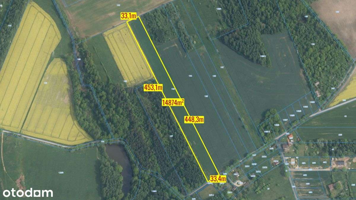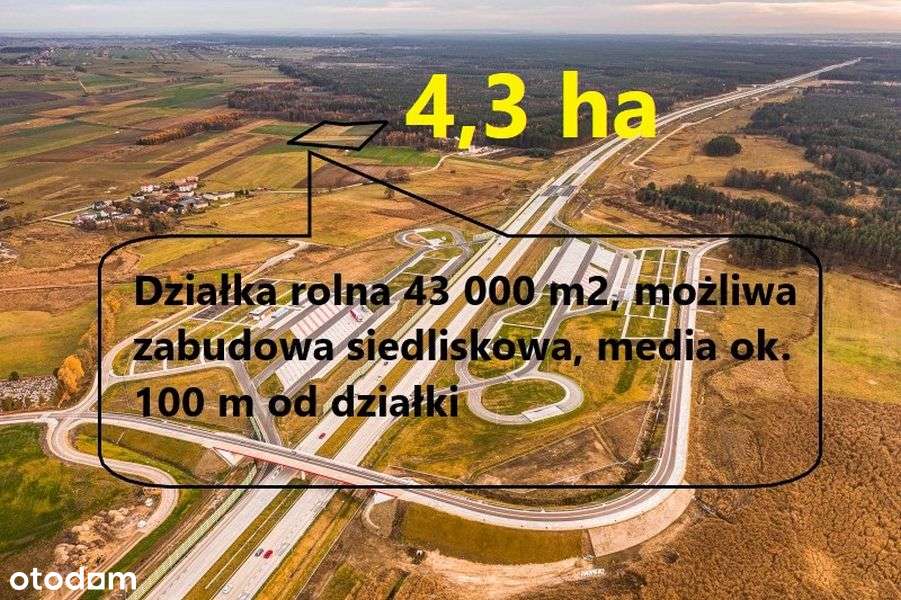 Działka rolna 43 440 m2 z MPZP z możliwością zabudowy siedliskowej