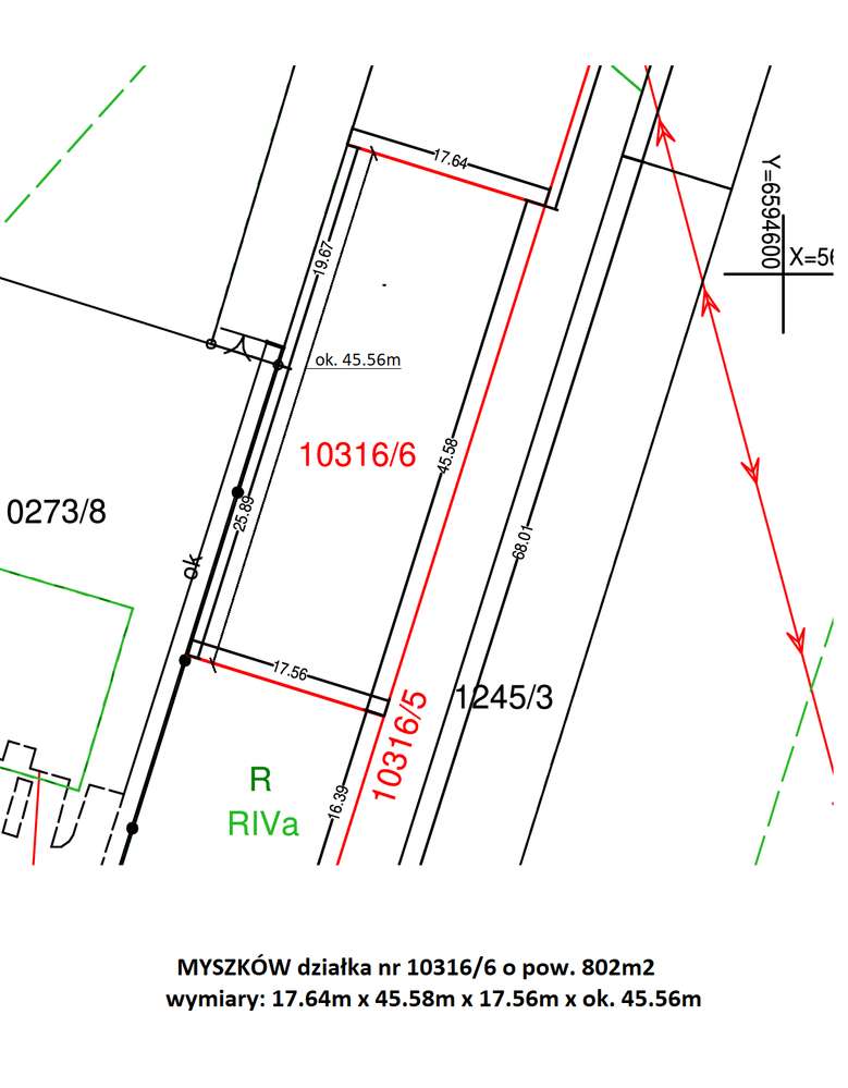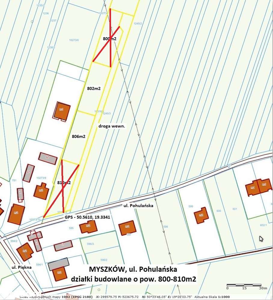 Myszków ul.Pohulańska dzialka budowlana (plan) 802m2 cena 99.000zł