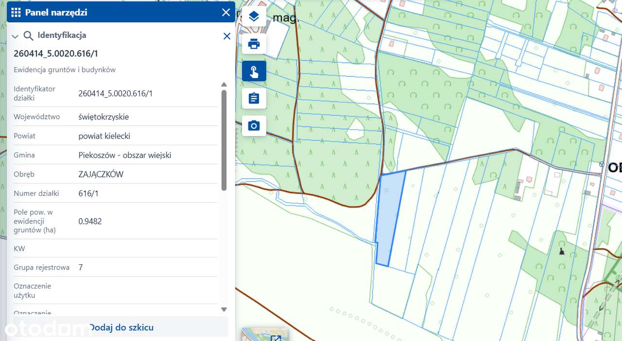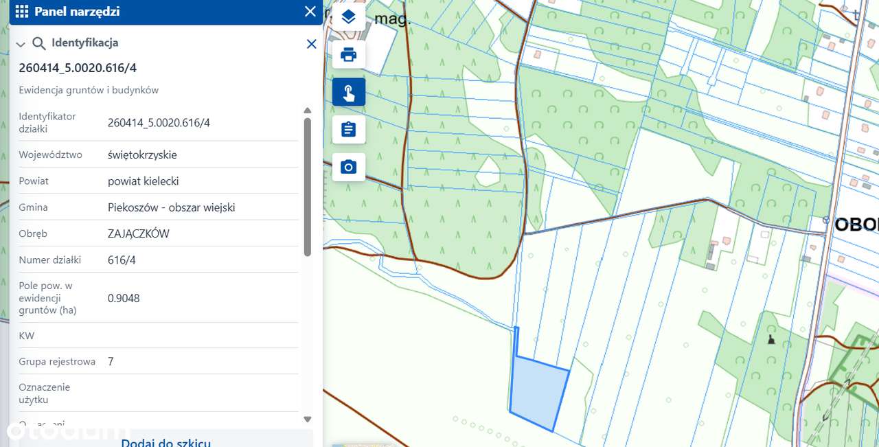 Dzialka, pow. 7776m2, Jaworznia, gm. Piekoszów