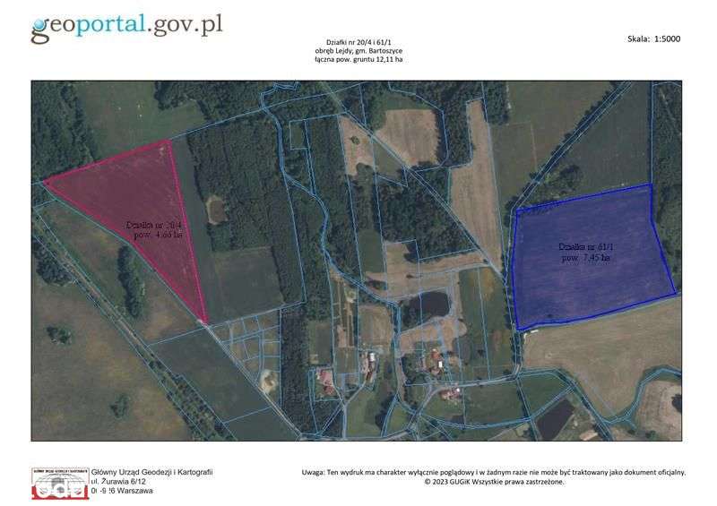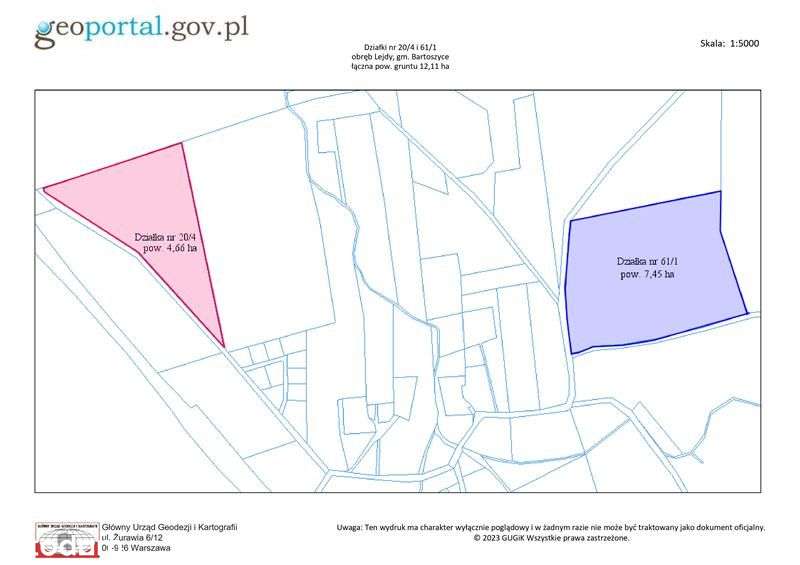 Działki rolne 12,11 ha Lejdy gm. Bartoszyce
