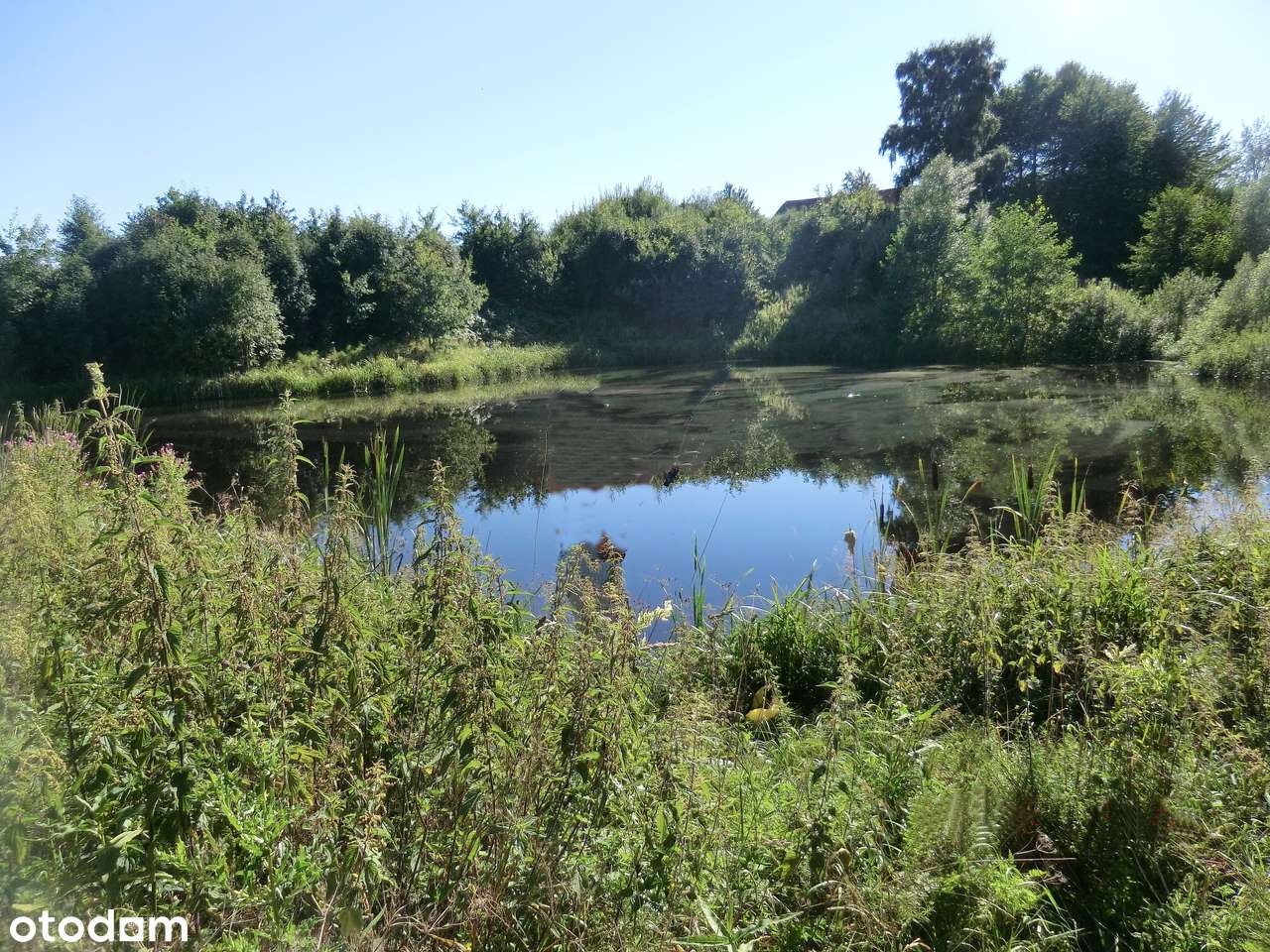 Na sprzedaż działka ze stawem i wiatą w Rybnie