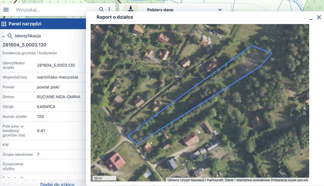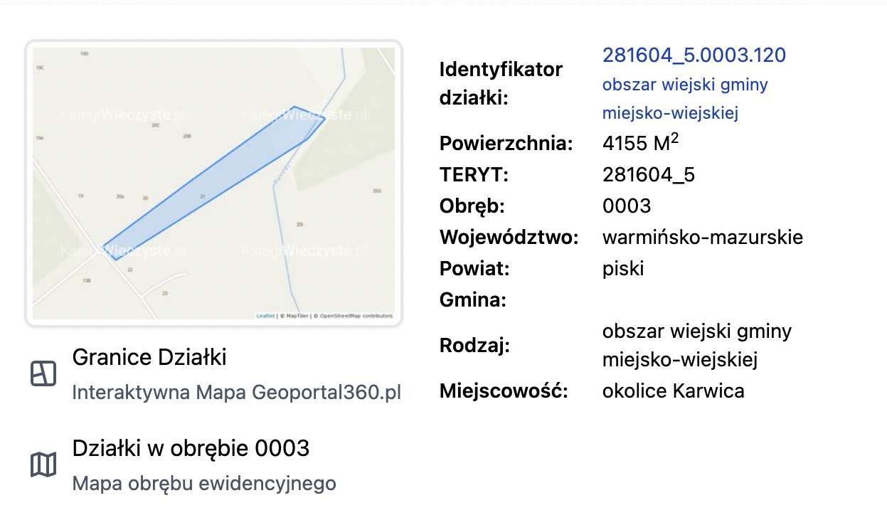 Działka 4100 m², Karwica (Mazury), nr 120, uzbrojona