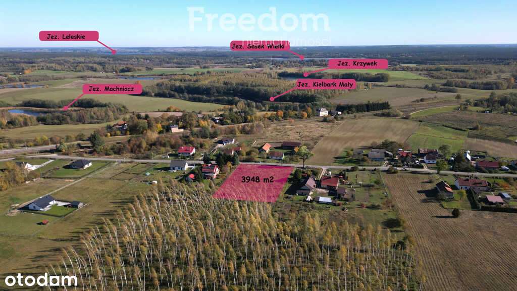 Działka w Gromie z linią brzegową jeziora!