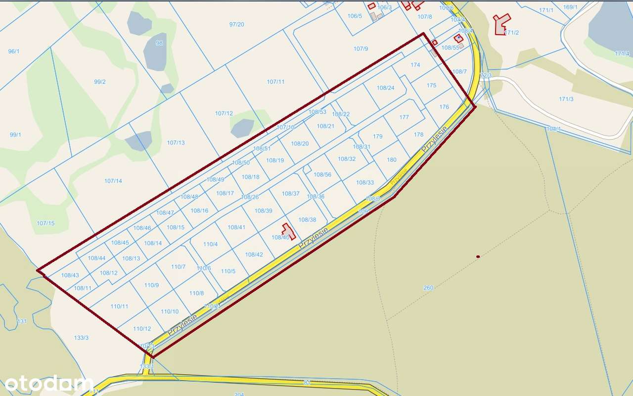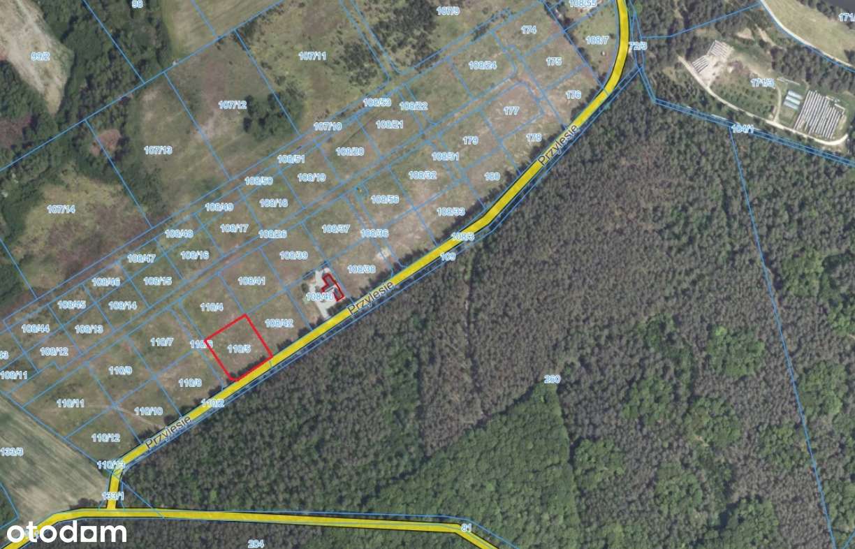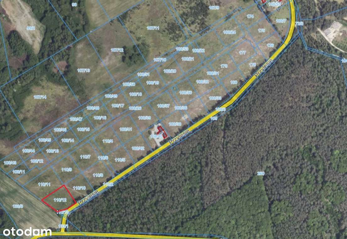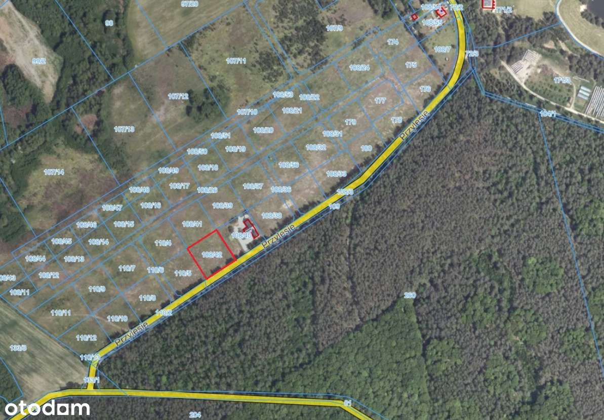 Działka przy domach i lini lasu