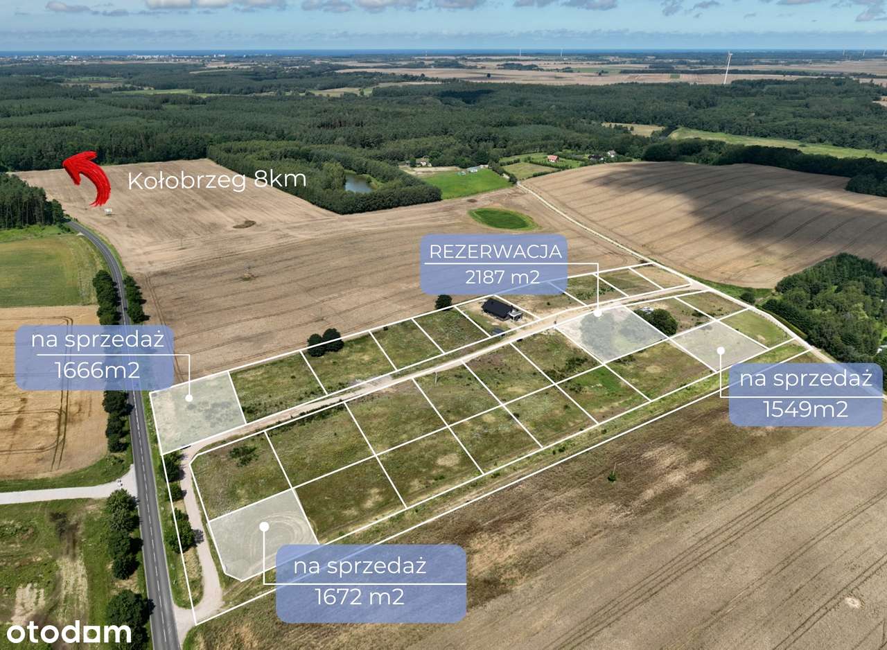 Działka budowlana pod Kołobrzegiem 14 km od morza!