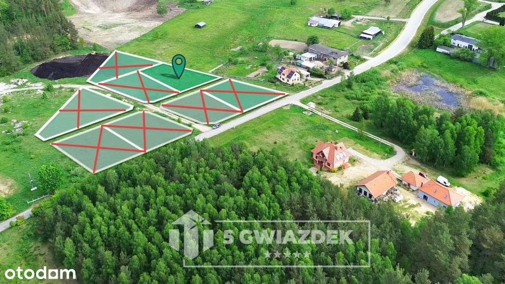 Działka budowlana przy lesie, blisko jeziora.