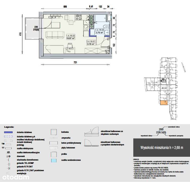 1-pokojowe mieszkanie 26m2 + balkon