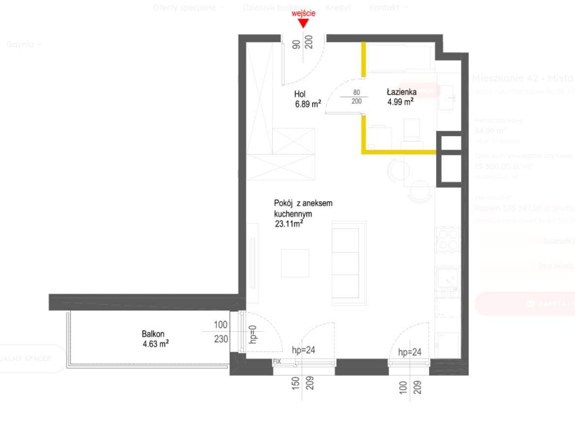 1-pokojowe mieszkanie 50m2 Bezpośrednio