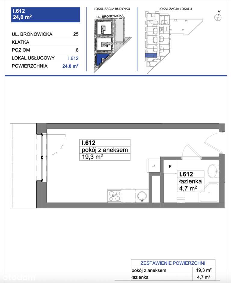 1-pokojowe mieszkanie 23m2 Bez Prowizji