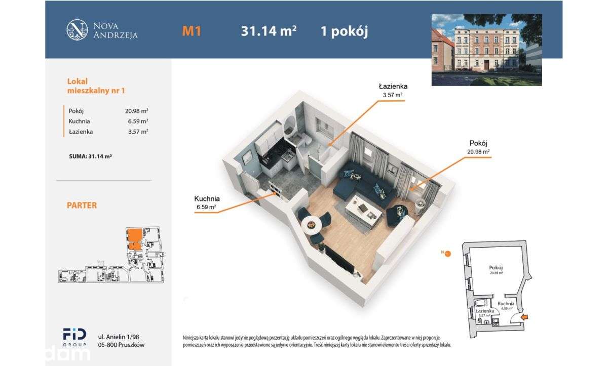Okazja! Gotowa kawalerka | 22 m² | Wysoki Parter