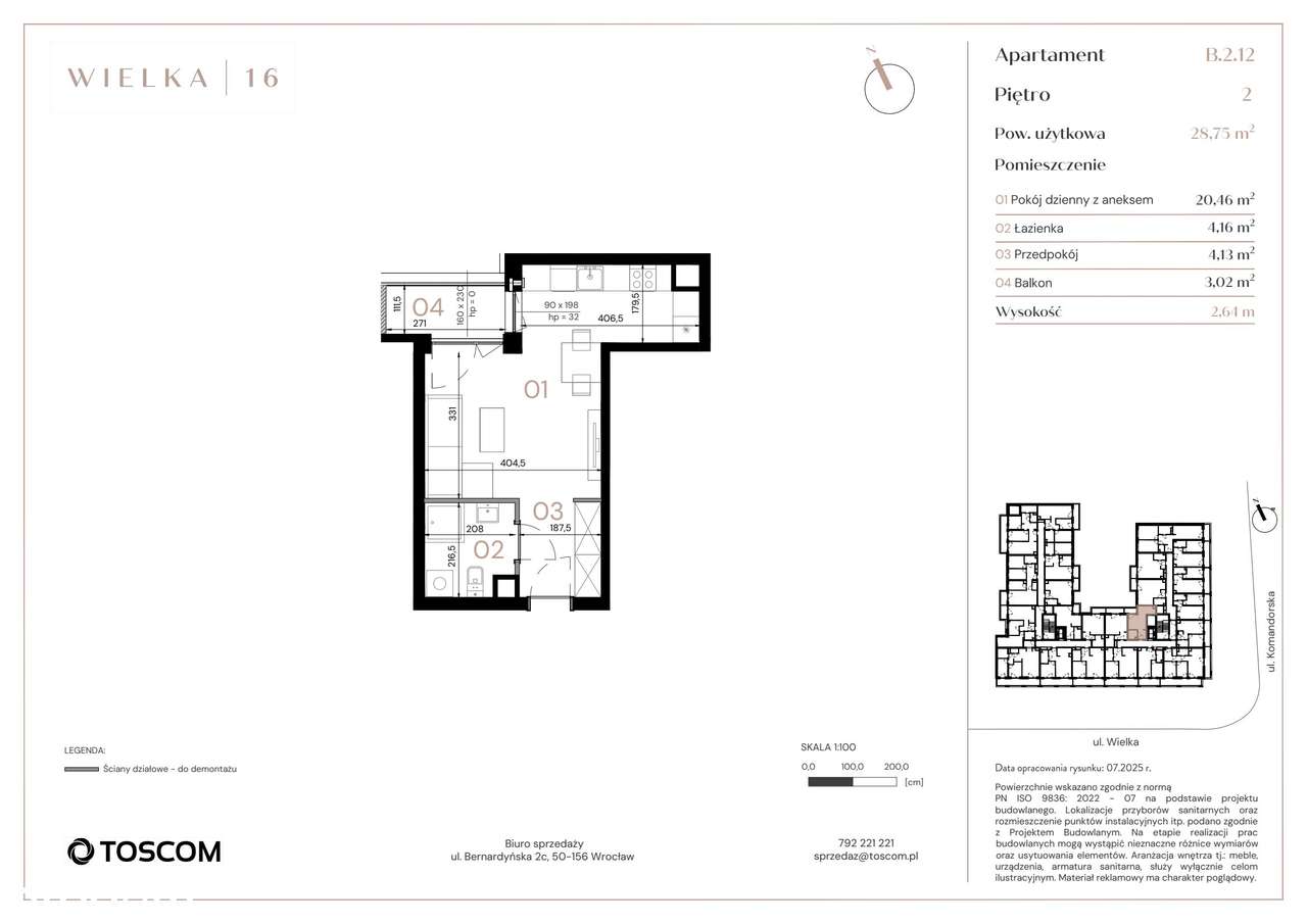 Kawalerka o pow. 23,6 m², Krzyki, Borek (REZERWACJA)