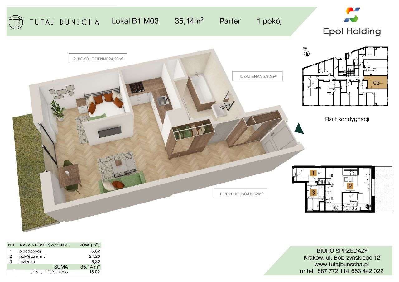 1-pokojowe mieszkanie 34 m2 + ogródek 48 m2, Bezpośrednio