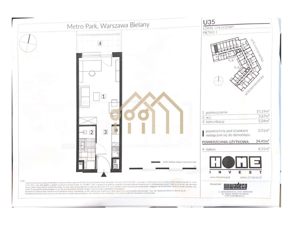 Metro 5 min./Zielone Bielany/Kawalerka/35,8 m2