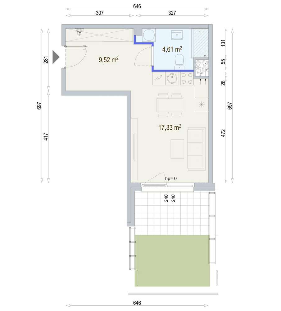 1-pokojowe mieszkanie 26m2 + loggia