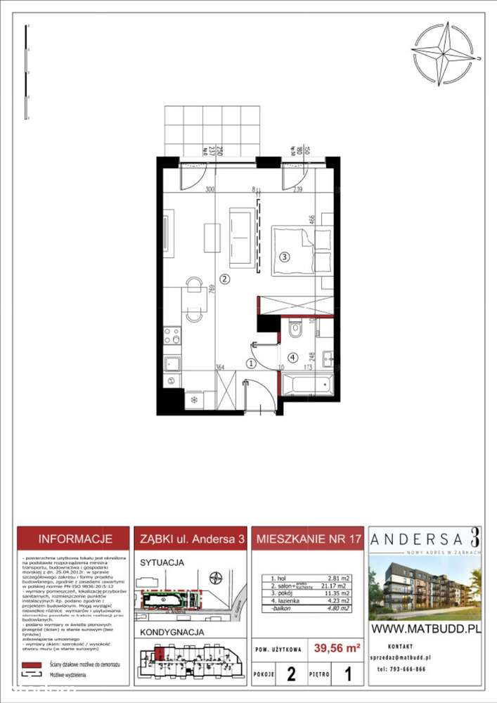 Nowe mieszkanie 2-pokojowe 39,56 m² z balkonem – Ząbki, ul. Andersa 3
