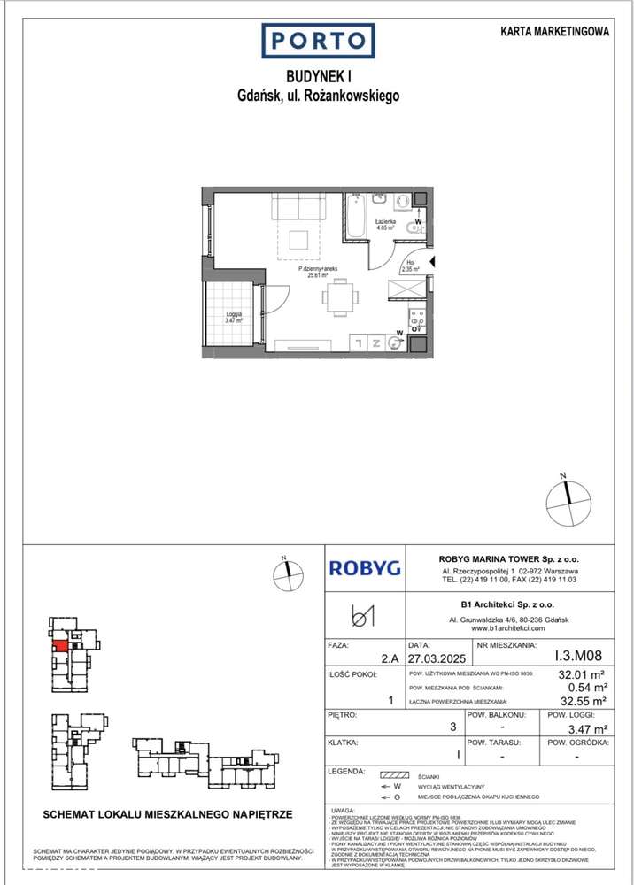 PORTO ROBYG Gdańsk – CESJA | 32,01 m² | 3 piętro | garaż w cenie