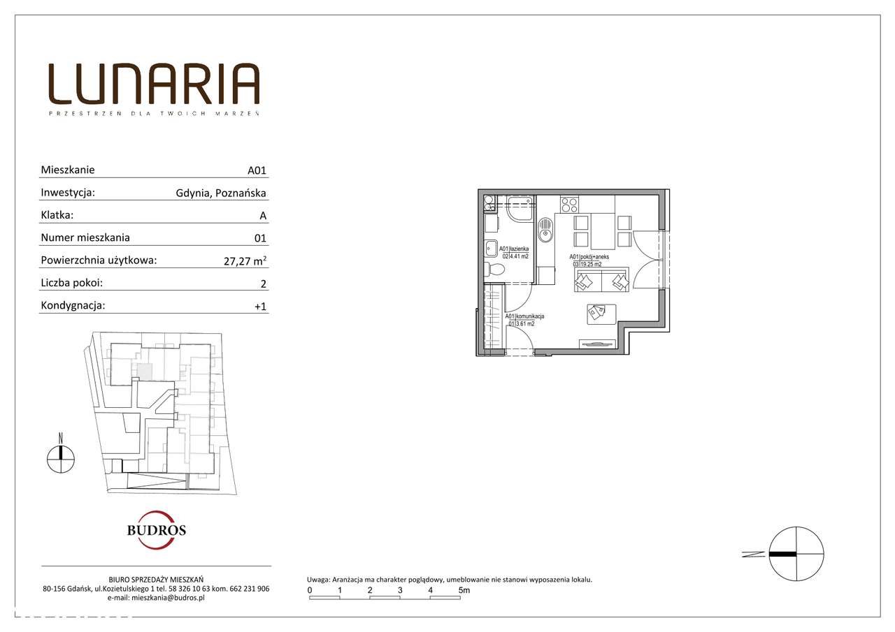 Lunaria - Działki Leśne, Gdynia - kawalerka - parter - A01 -Promocja %