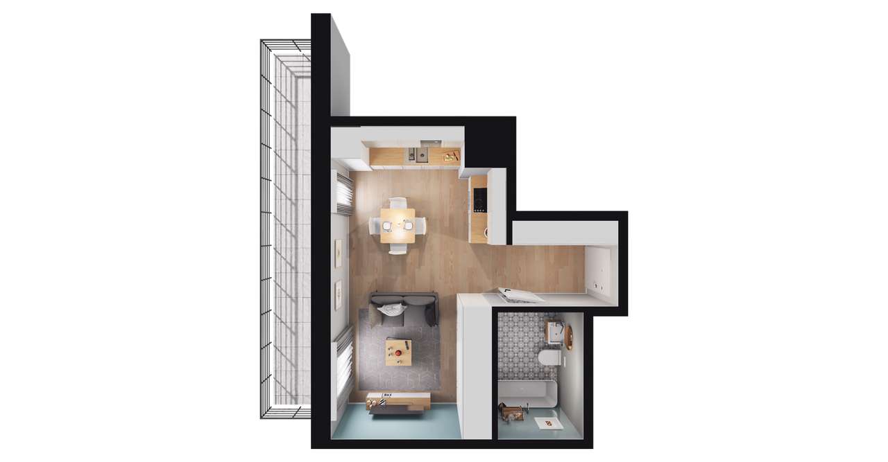 1-pokojowe mieszkanie 45m2 + loggia