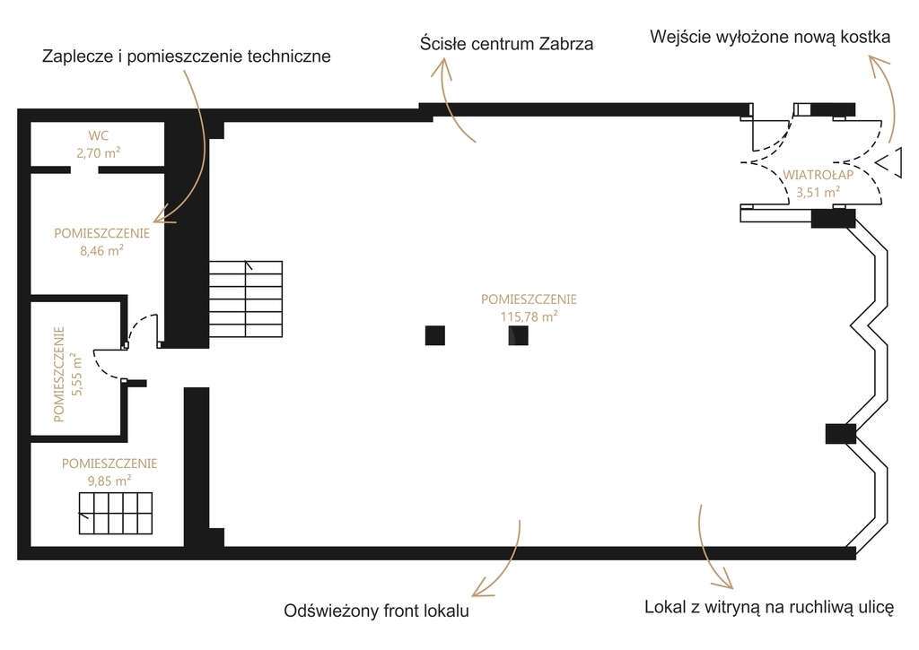 Atuty nieruchomości:Lokal usługowy w ścisłym centrum Zabrza przy ul. Wolności – duży potencjał handlowo‑usługowy.Parter z szerokimi witrynami od ulicy – świetna ekspozycja i widoczność z głównego ciąg...