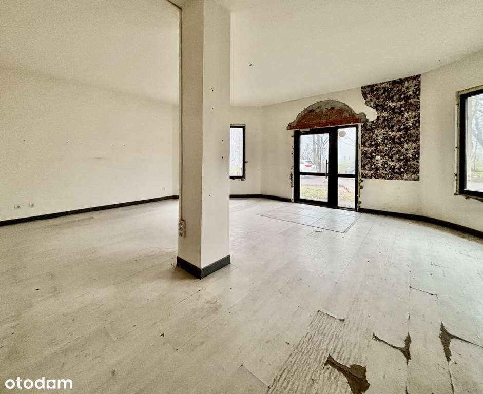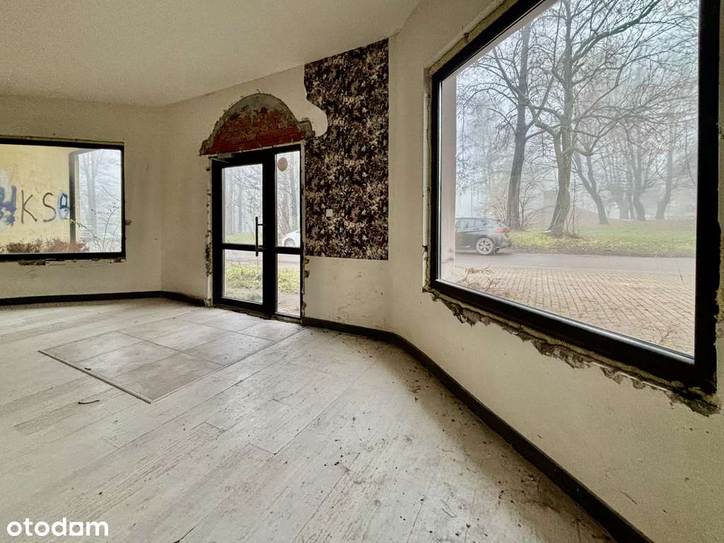 Blisko osiedla, przy drodze, duże witryny