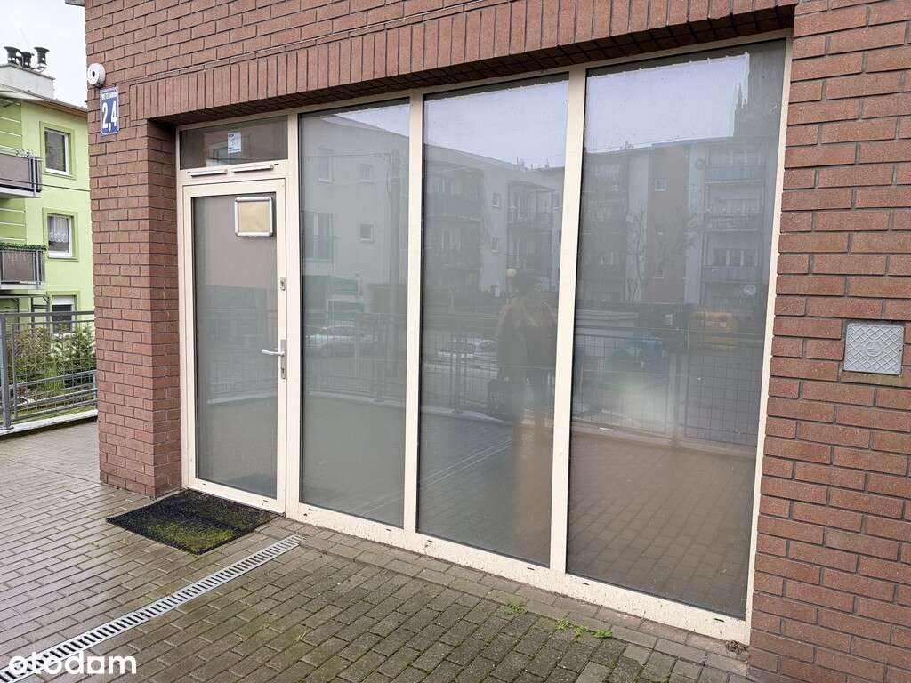 Lokal na parterze z dużą witryną.