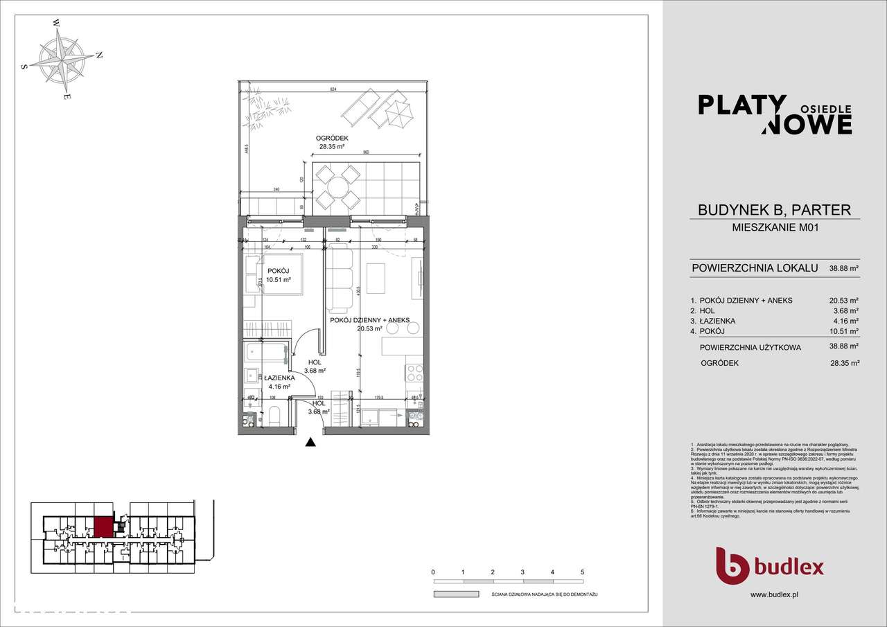 2-pokojowe mieszkanie 44m2 + ogródek