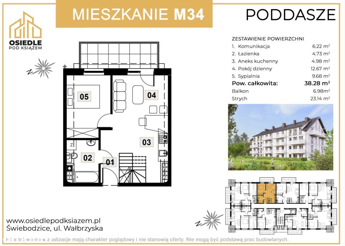 Mieszkanie, 34,98 m², Wałbrzych