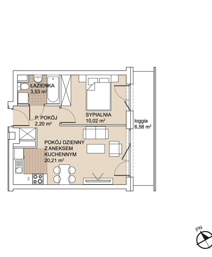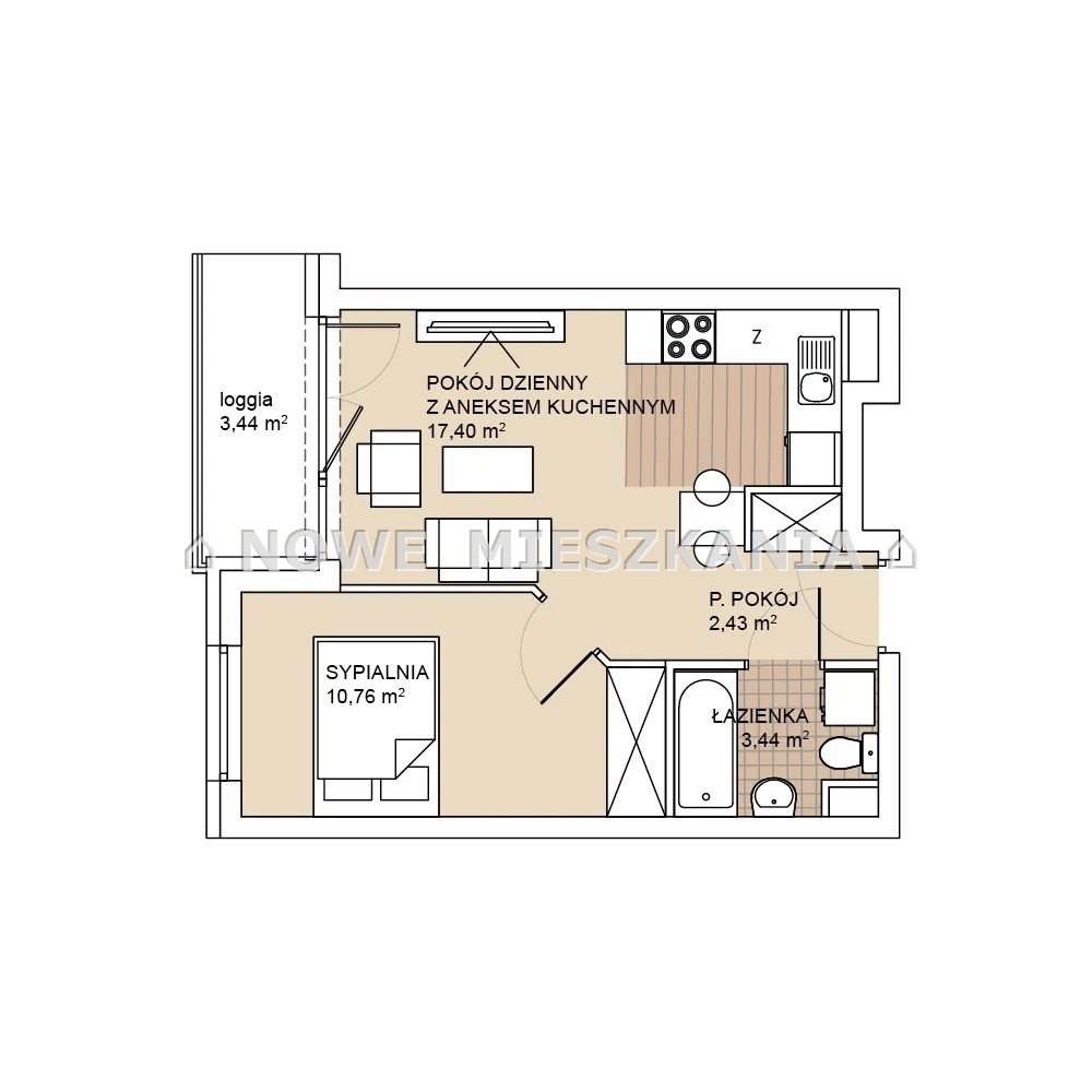 2 pokoje/33m2/loggia/miejsce postojowe w cenie