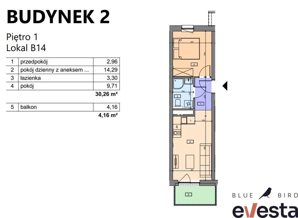 2-pokojowe mieszkanie 39m2 + balkon