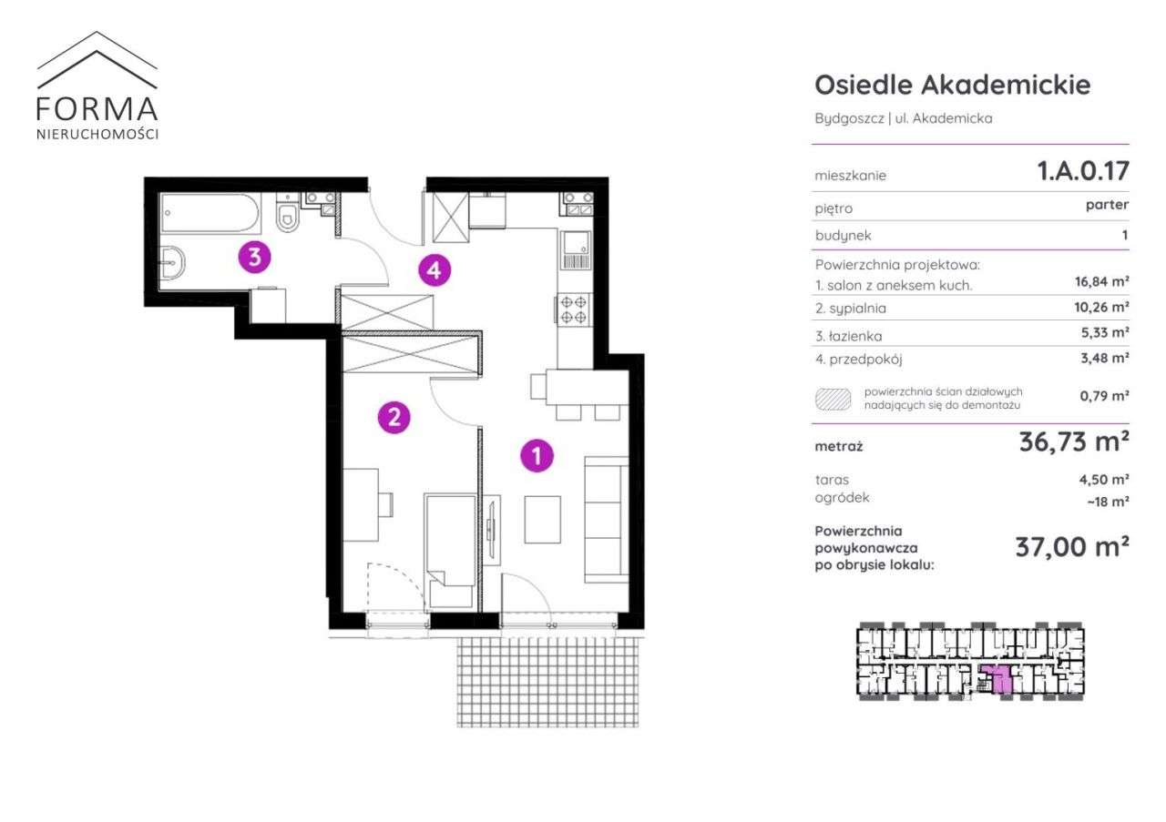 Apartament 38,16 m2 + Miejsce w Hali + Komórka