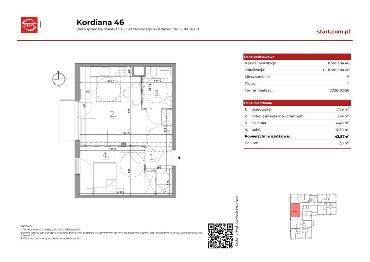 2-pokojowe mieszkanie 46m2 + loggia Bezpośrednio