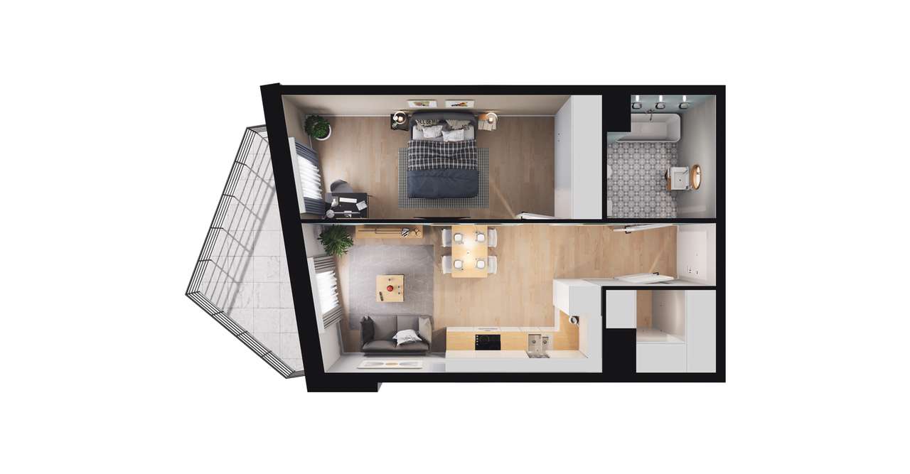 2-pokojowe mieszkanie 44m2 + loggia