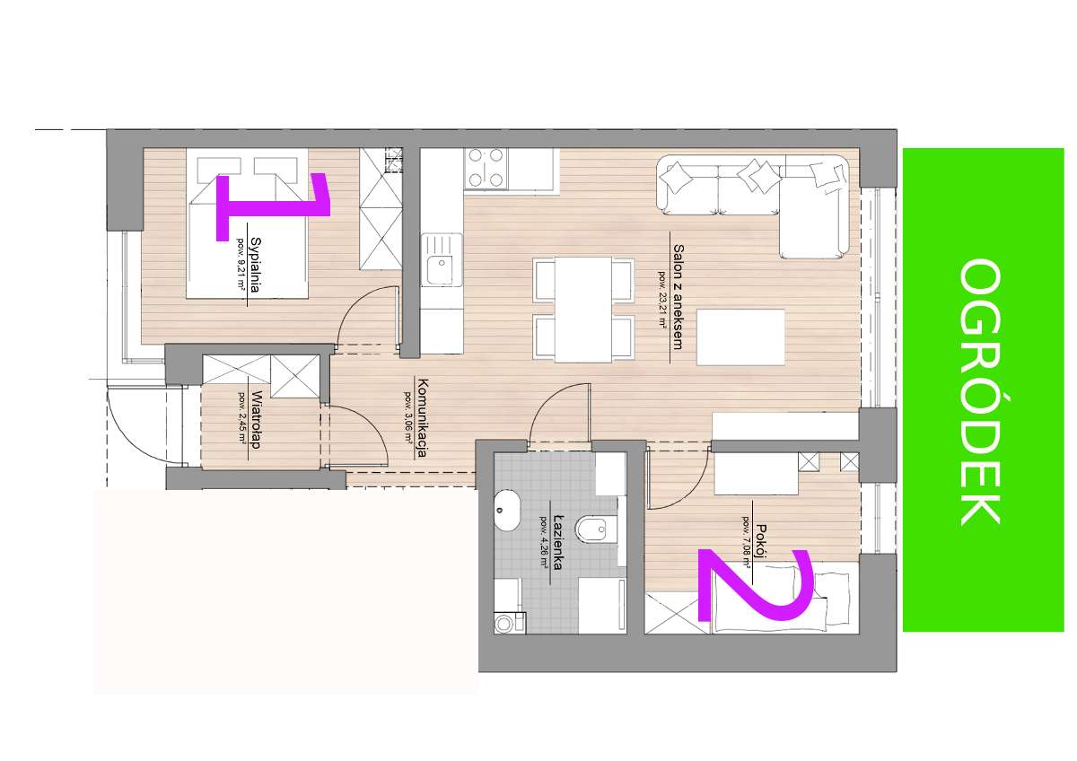 2-pokojowe mieszkanie 43m2 + ogródek Bezpośrednio