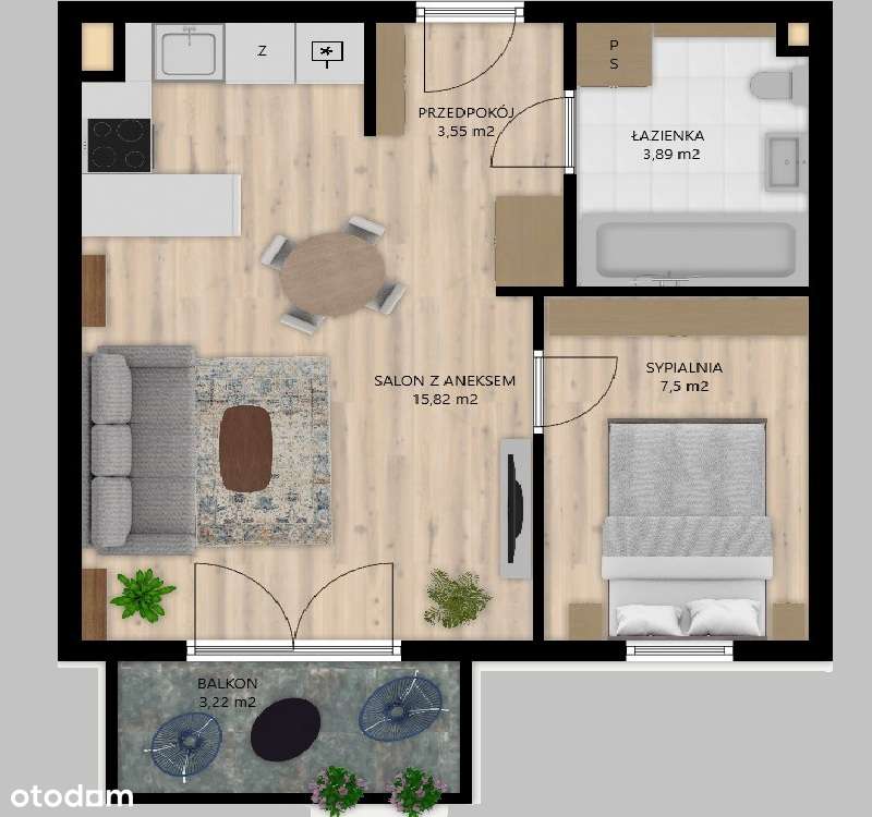 Dwa pokoje | Balkon | Miejsce parkingowe