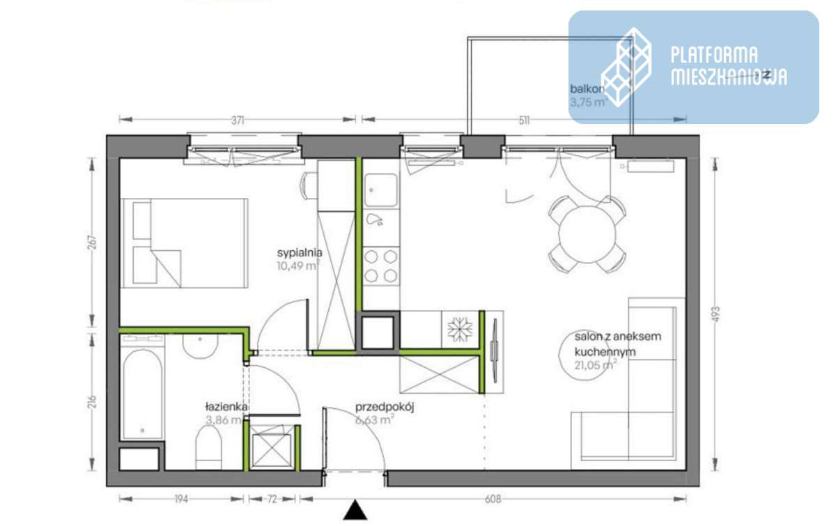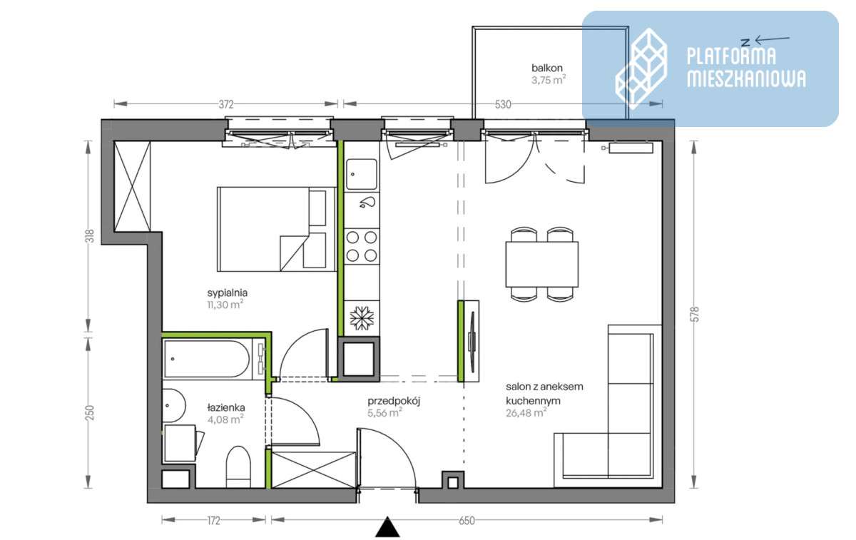 2-pokojowe mieszkanie 41m2 + balkon