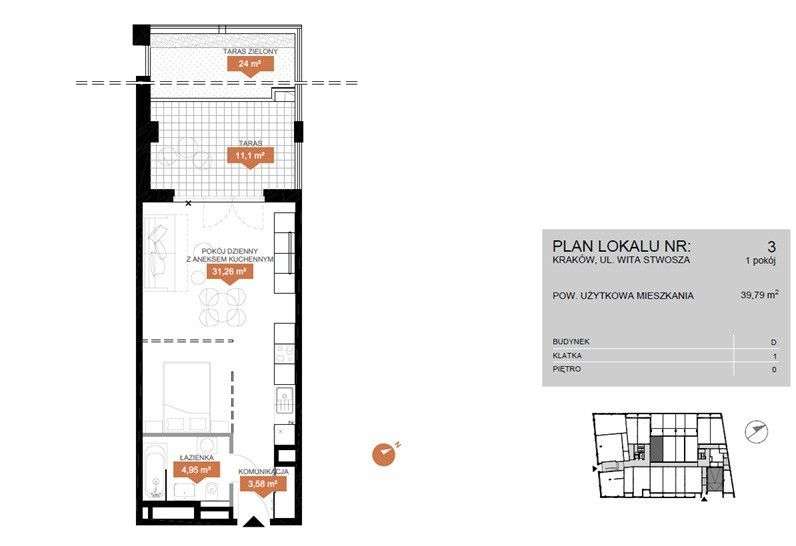 Stare Miasto apartamentowiec 1/2 pok taras + ogród