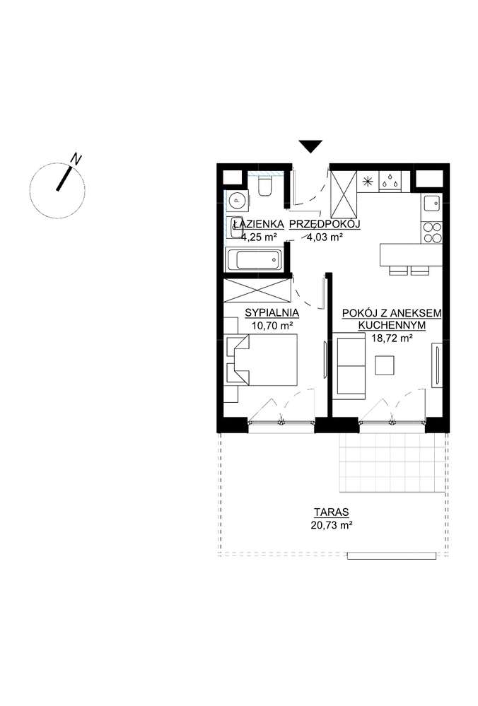 Olszynki Park, N30 – 46,13 m2, 2 pokoje, 6 piętro