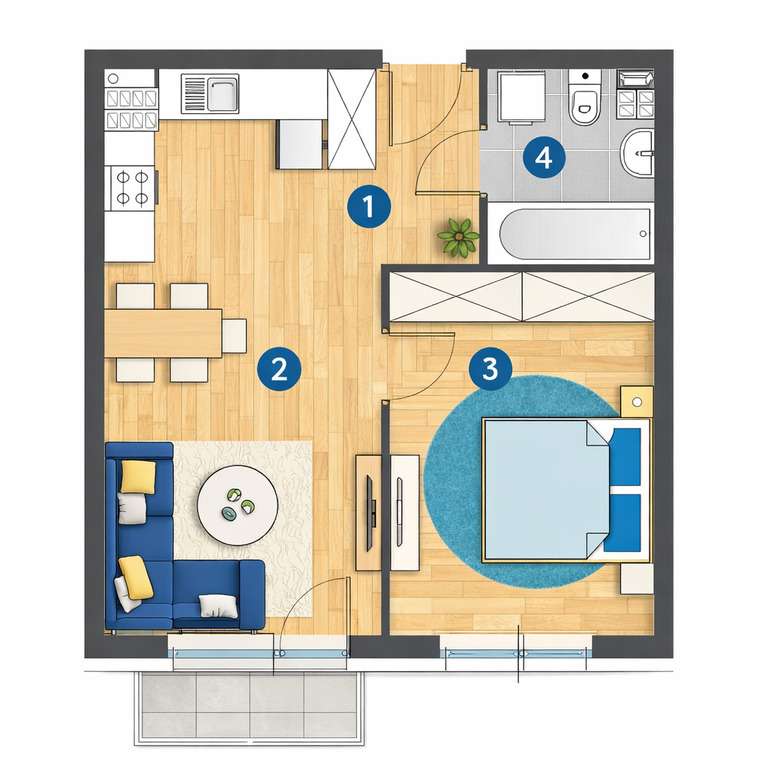 2-pokojowe mieszkanie 42m2 + balkon